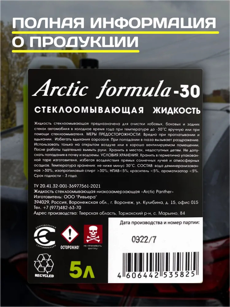 Жидкость для стеклоомывателя Arctic Formula -30 Незамерзайка 5л 4шт