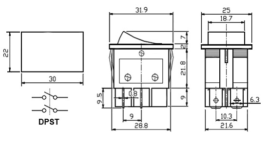 Выключатель клавишный IRS-201 ON-OFF 250V 30А (4с) красный с подсветкой