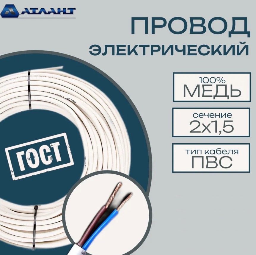 Кабель ПВС Атлант 2х1.5 ГОСТ 30м 90003
