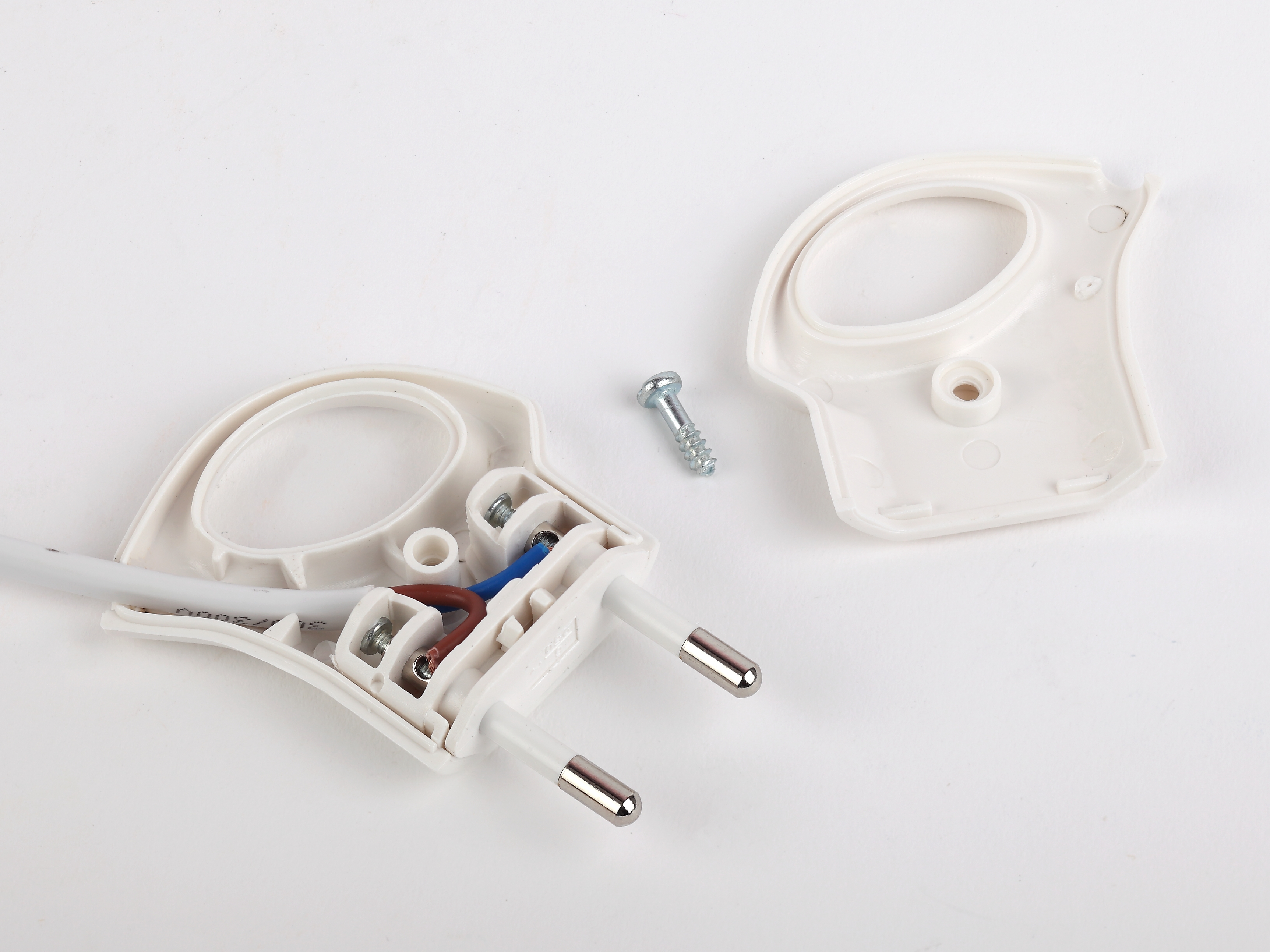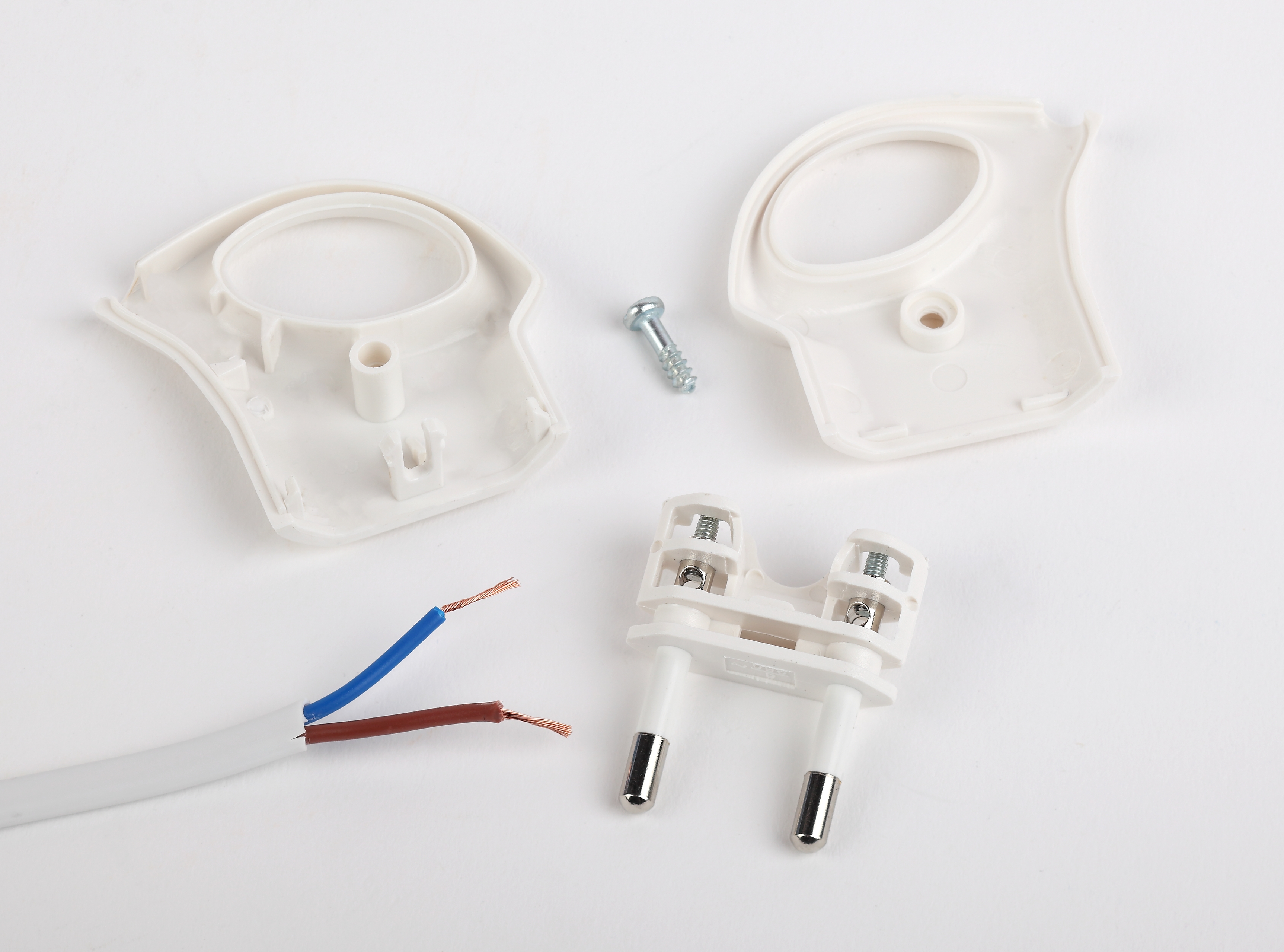Вилка имеет разборную конструкцию. Служит для соединения с питающим проводом. Позволит легко и быстро заменить штепсельную вилку, вышедшую из строя. Изделие применяется для подсоединения бытовой техники к электрической сети.