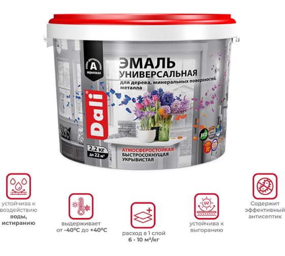 Эмаль Dali универсальная акриловая полуматовая RAL 9010 2,2кг