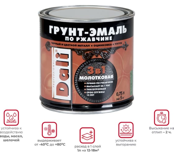 Грунт-эмаль по ржавчине Dali 0,75л шоколадная молотковая