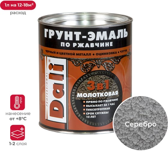 Грунт-эмаль по ржавчине Dali 2л серебристая молотковая