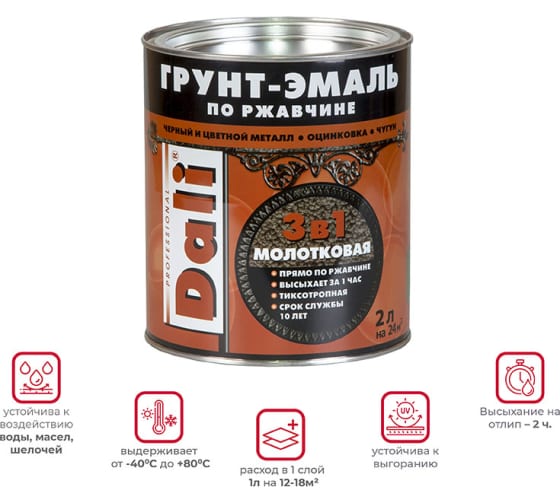 Грунт-эмаль по ржавчине Dali 2л шоколадная молотковая
