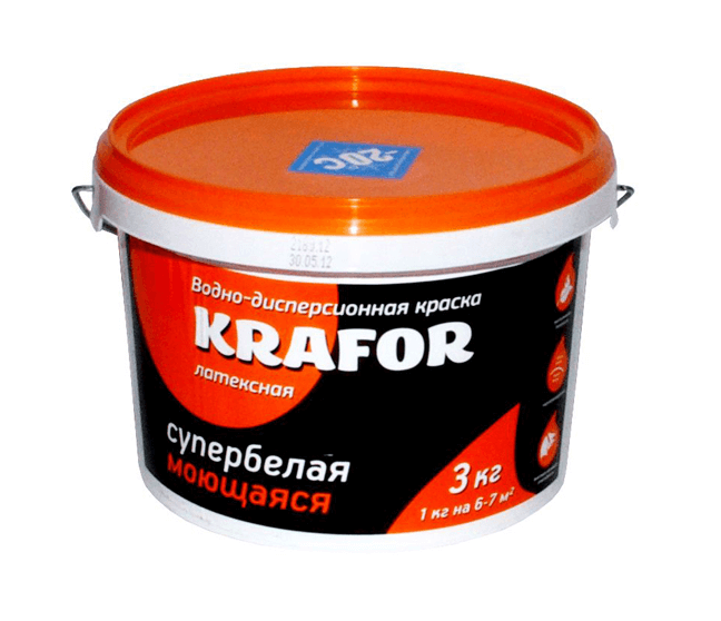 Краска Krafor интерьерная моющаяся супербелая 3кг