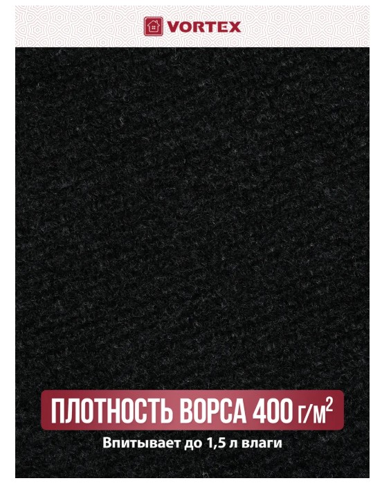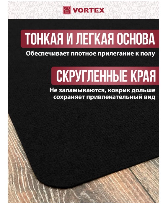 Коврик 60х90см "VORTEX" "SLIM" влаговпитывающий, чёрный 24392