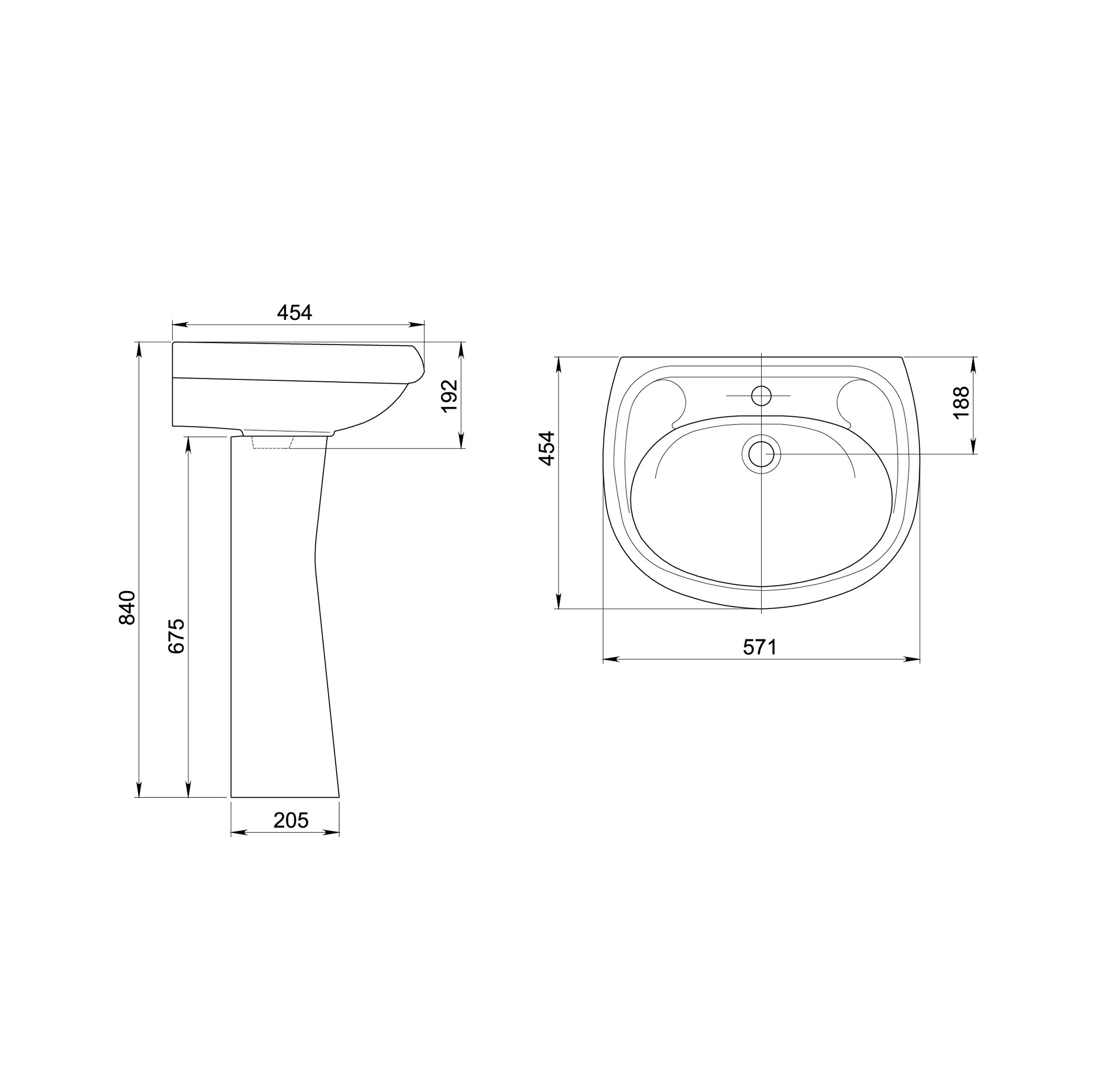 Раковина Тюльпан с пьедесталом Воротынский 57 белый с 1отв Вототынск
