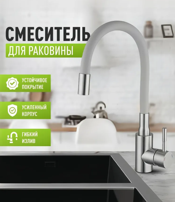 Смеситель для кухни SUS 304 серый гибкий излив / без подводки