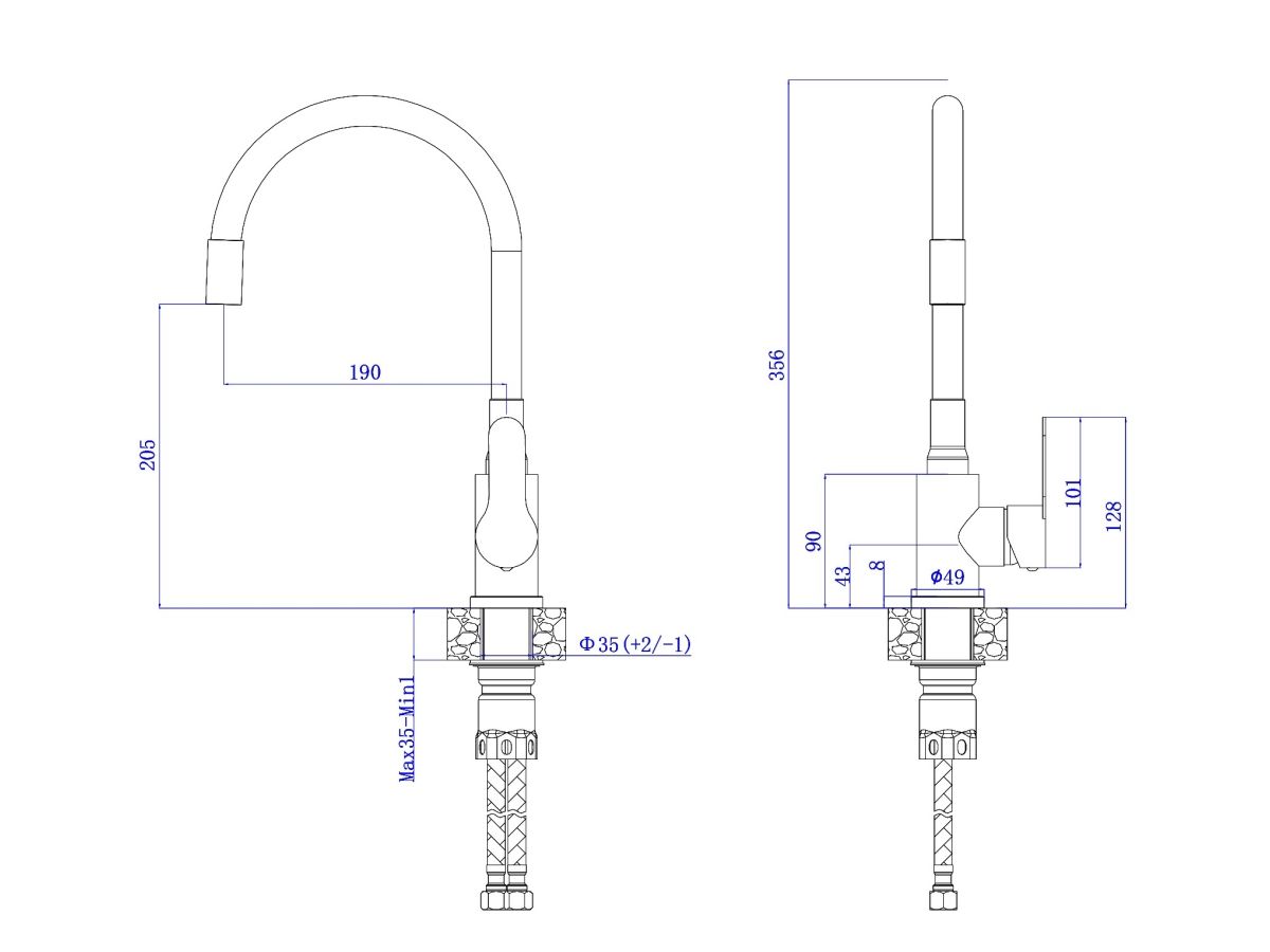Высота излива:    205 мм