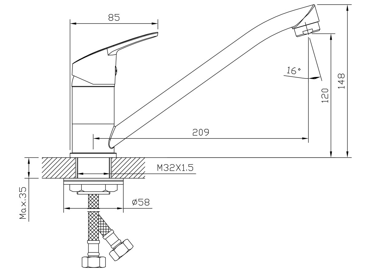 Смеситель AVAPAX для кухни AP08179C Lt D35 серия Neckar