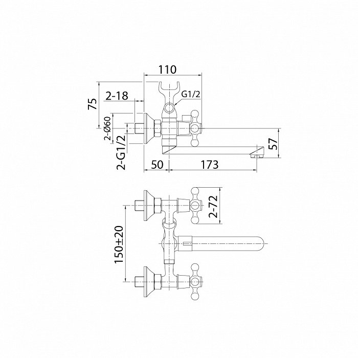Смеситель MILARDO DUPSB02M02 Duplex для ванны