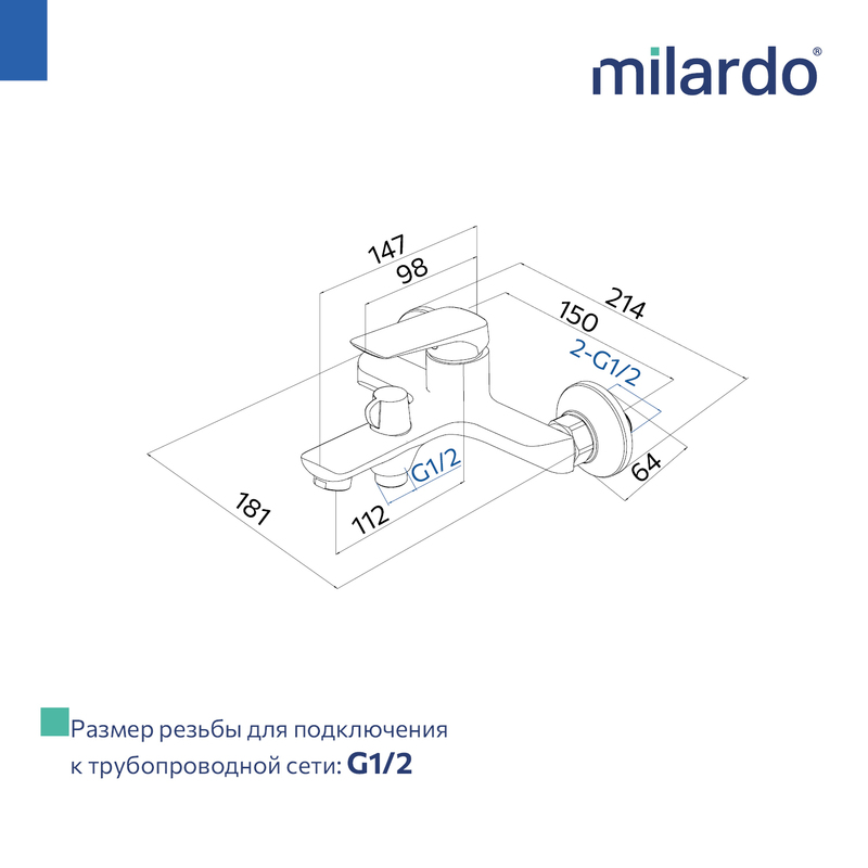 Смеситель Milardo MAKSB00M02 Макс для ванны