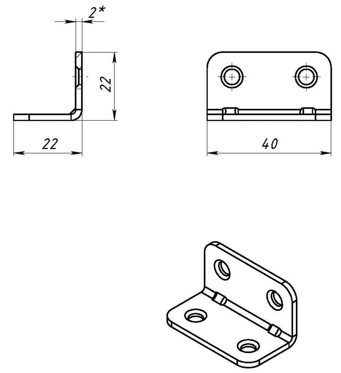 Уголок мебельный усиленный 22х22х40мм, оцинкованный 1198580