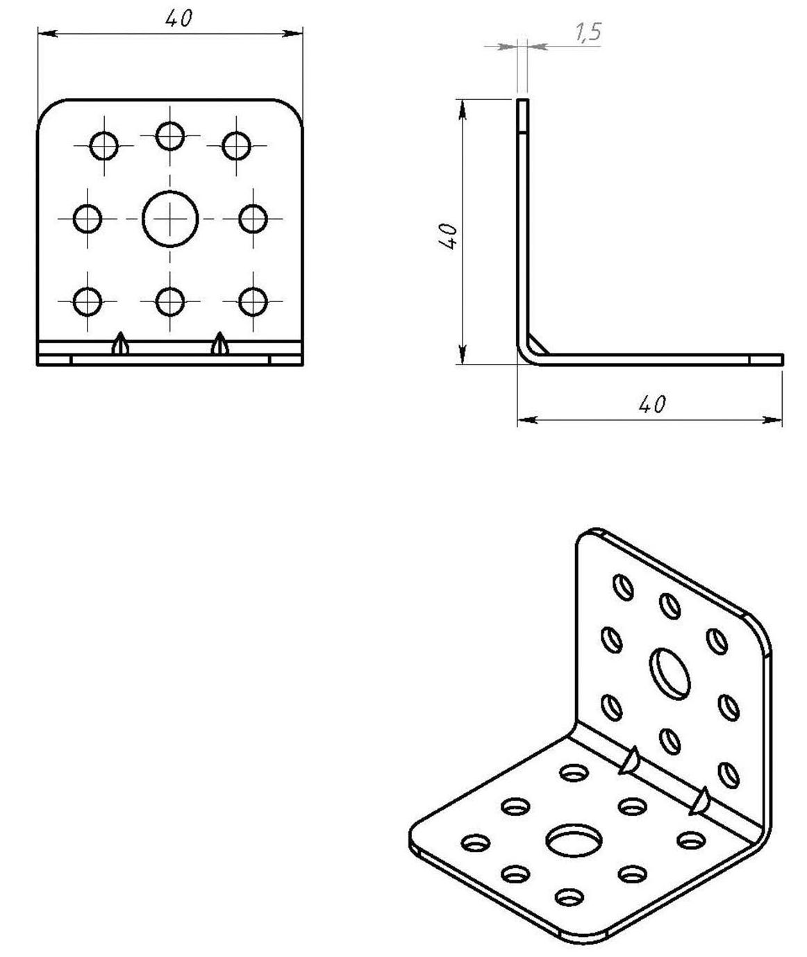 Уголок оц. 40х40х40мм. двухплоскостной, усиленный