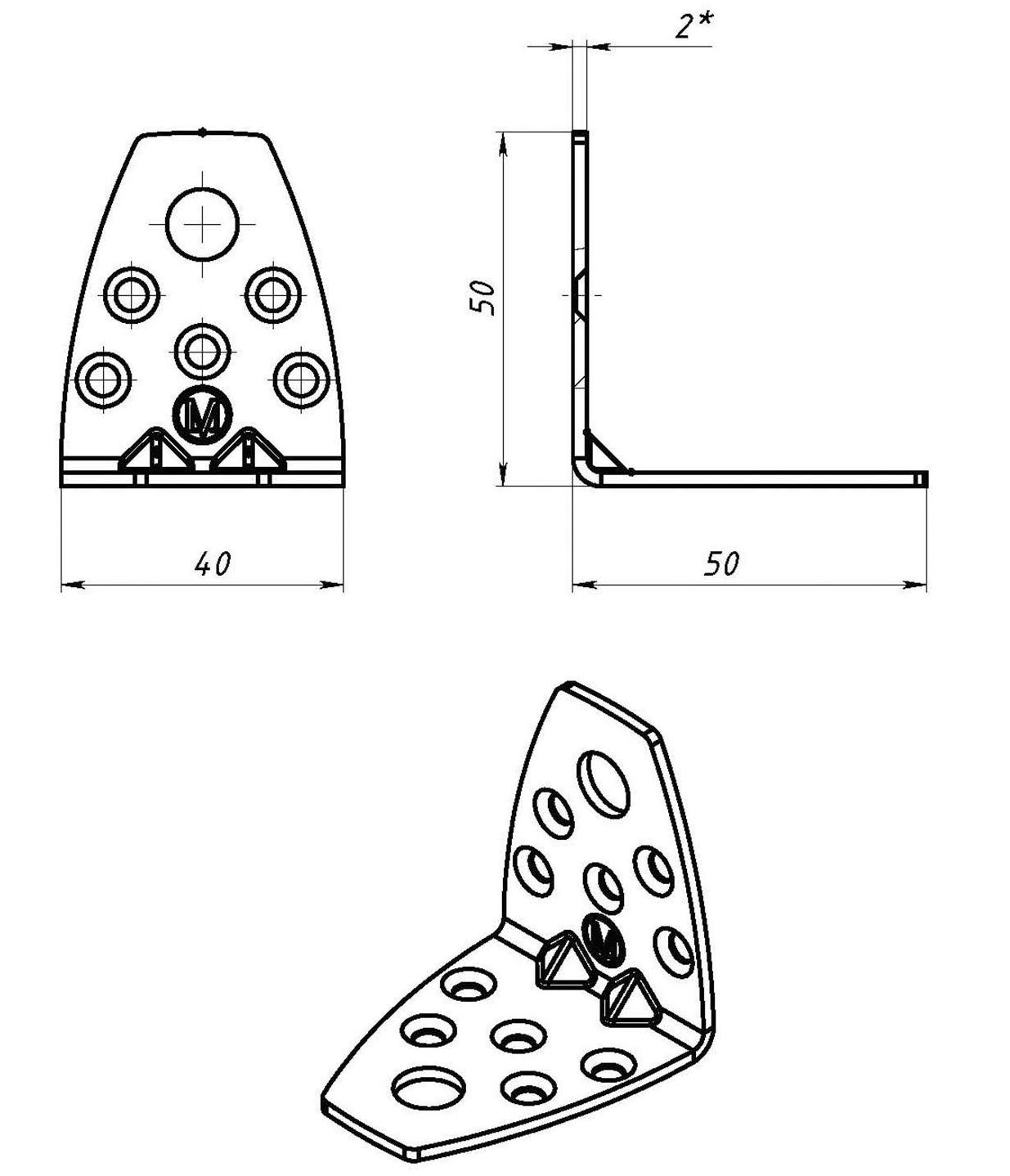 Уголок оц. 50х50х40х2мм усиленный, с зенковкой 4886543