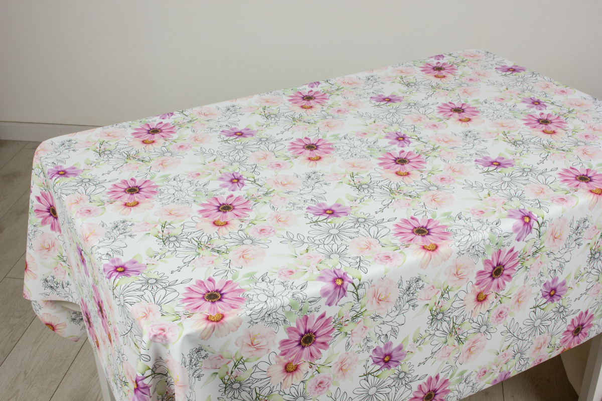 Клеенка  100% ПВХ на тканой основе с тиснением и печатным рисунком на лицевой стороне.