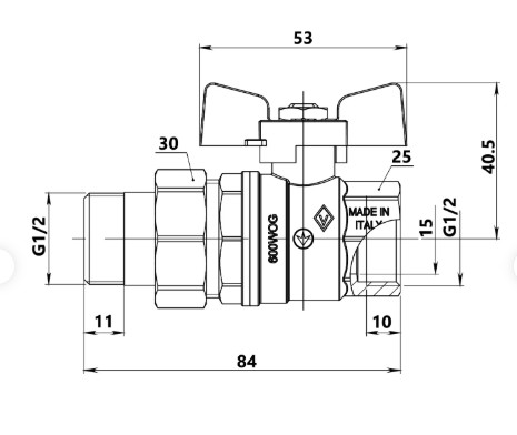 Кран шаровый Bugatti Oregon 03220027 1/2" бабочка (американка)