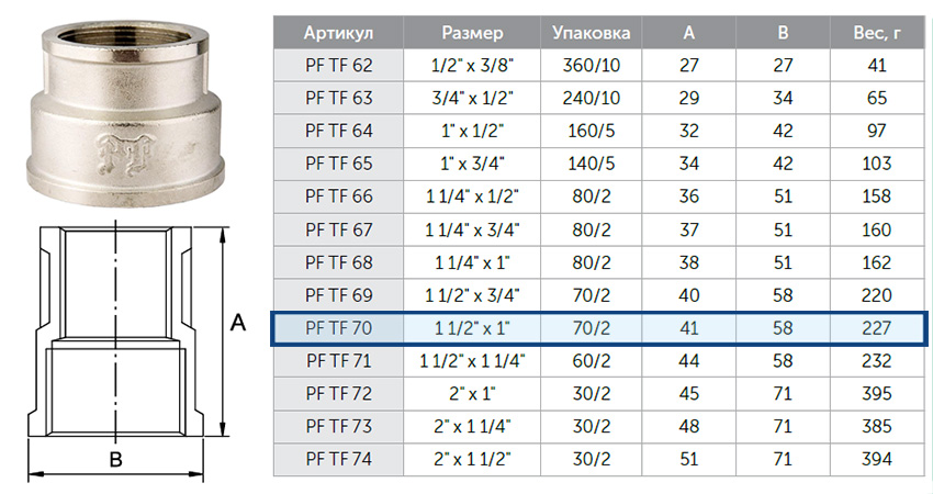 | Размер резьбы: | 1"1/2х1" (40х25мм) |