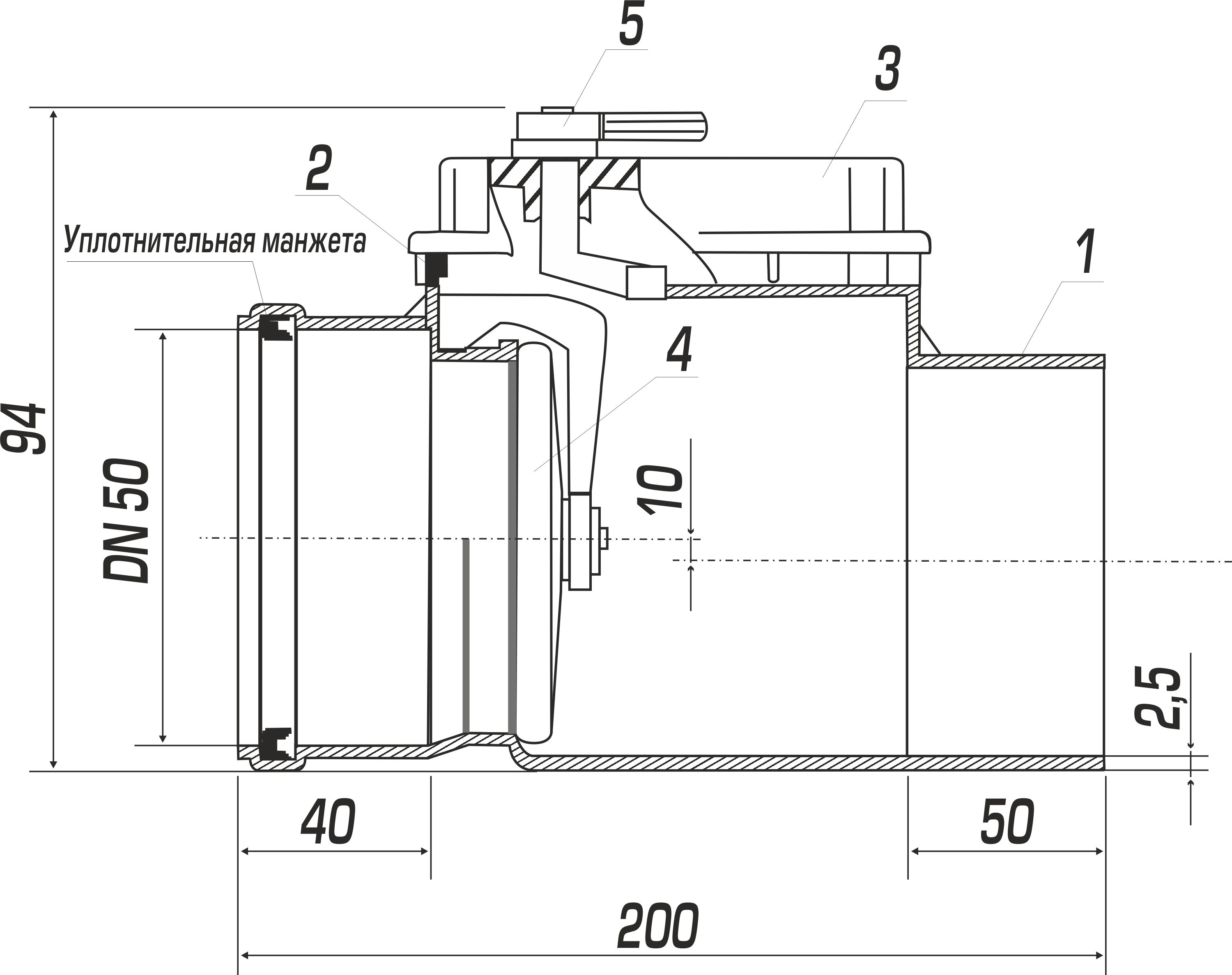 Обратный клапан канализационный полипропилен РосТурПласт 11338 50мм