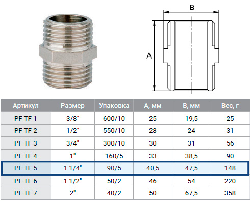 Переходник латунный 1"1/4х1"1/4 (32х32мм)