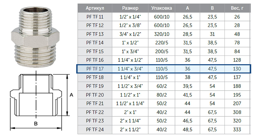 | Размер резьбы: | 1"1/4х3/4" (32х20мм) |