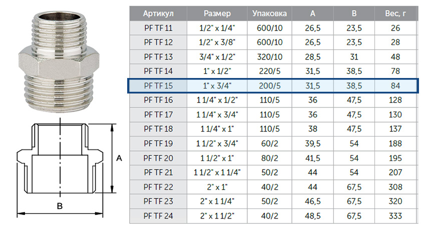 | Размер резьбы: | 1"х3/4" (25х20мм) |
