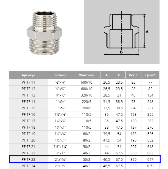 | Размер резьбы: | 2"х1"1/4 (50х32мм) |