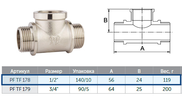 Тройник латунный 1/2" (15мм) ш/г/ш