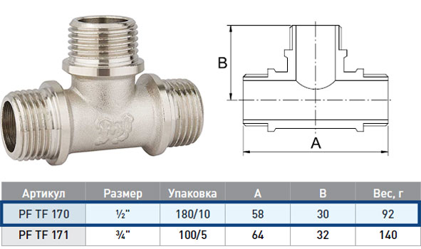 Тройник латунный 1/2" (15мм) ш/ш/ш