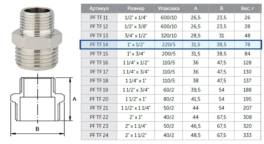 Размер резьбы: 1"х1/2" (25х15мм)